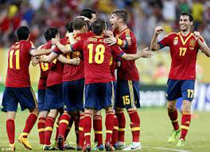 پدرو و سولدادو زننده گل های اسپانیا در دقایق 21 و 31 بودند. نیمه اول با همین نتیجه خاتمه یافت. اسپانیایی ها اگر اندکی خوش شانس تر بودند، می توانستند گل های بیشتری در این نیمه بزنند.
