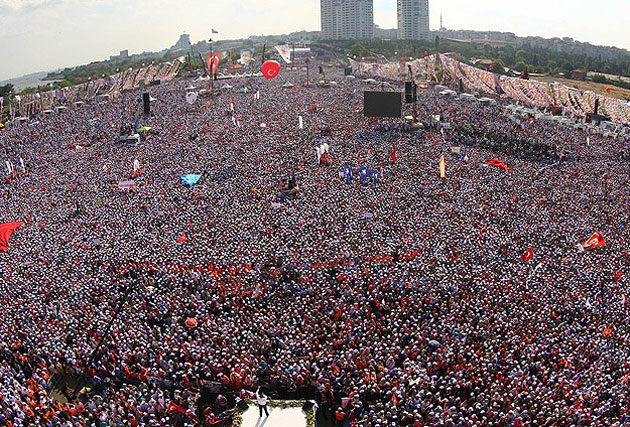 رسانه های حامی دولت اسلامگرای ترکیه جمعیت حاضر در این گردهمایی را بالای 1 میلیون نفر اعلام کرده اند ولی مخالفان این اجتماع را گردهمایی صدها هزار نفری خوانده اند.
