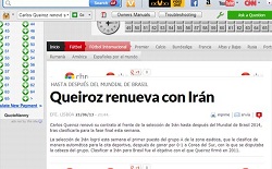 دراین گزارش می خوانیم:« کارلوس کئیروش بعد از مسجل شدن صعود تیم ملی ایران به مرحله نهایی رقابت های جام جهانی 2014، قراردادش را با فدراسیون فوتبال ایران تا بعد از جام جهانی تمدید کرد.»