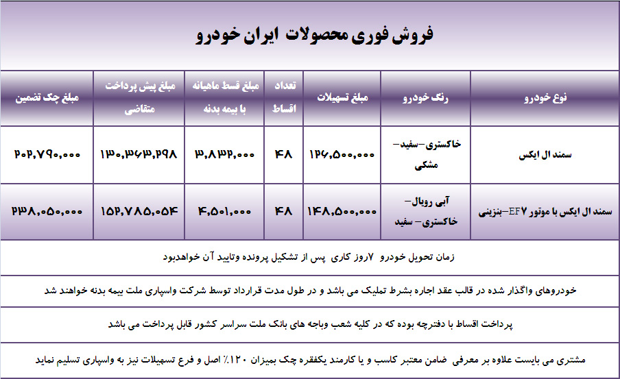 فروش لیزینگی محصولات ایران خودرو از سوی شرکت واسپاری ملت آغاز شد.
