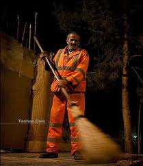 مولایی یکی دیگر از زحمتکشان شهرداری است که ساعت 5 صبح در حال تمیز کردن