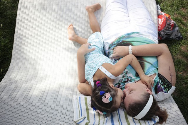 هم آغوشی یک مادر و دختر در پارکی در مسکو