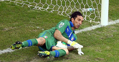 بوفون در دیدار برابر اروگوئه که به ضربات پنالتی کشیده شد سه ضربه را مهار کرد تا تیمش با نتیجه سه بر دو به پیروزی رسد.