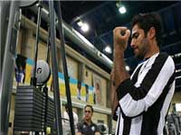 *خسرو حيدري که از روز گذشته در تمرينات استقلال شرکت کرده بود امروز در کنار ديگر آبي پوشان وزنه زد.