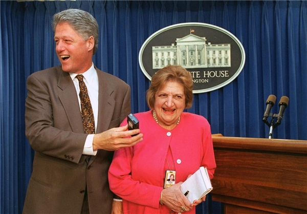 هلن توماس پر سابقه ترین خبرنگار کاخ سفید بود به نحوی که با 10 رییس جمهور آمریکا کار کرده بود و در اتاق کنفرانس خبری کاخ سفید صندلی وِیژه ای داشت.