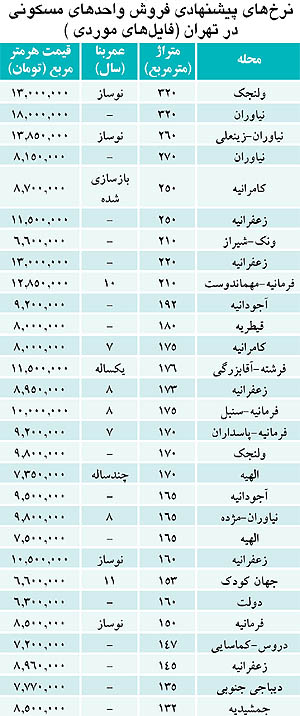 از سوی دیگر در خیابان زینعلی در محدوده نیاوران فروشنده‌ای ارزش واحد ۲۶۰ متری نوساز خود را متری ۱۳ میلیون و ۸۵۰ هزار تومان اعلام کرده است.