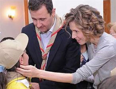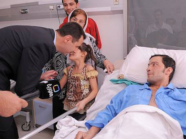 عکس های بشار اسد و "اسماء" همسرش ، دیدار آنها با زخمی شدگان جنگ داخلی سوریه و نیز دیدار آنها با اقشار مختلف مردمی را نشان می دهد.