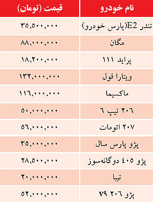 قيمت خودرو‌هاي داخلي در بازار (جدول)
