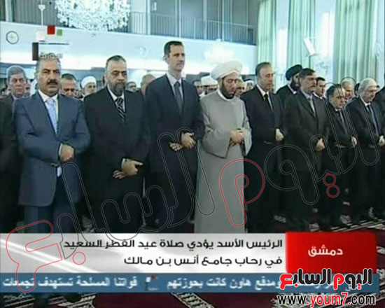 عصرایران - بشار اسد رئیس جمهور سوریه روز پنجشنبه، نماز عید فطر را در مسجد انس بن مالک دمشق به جا آورد. این در حالی است که مخالفان مسلح مدعی شده بودند کاروان حامل اسد را صبح پنجشنبه مورد هدف قرار داده اند اما وزیر اطلاع رسانی سوریه این موضوع را تکذیب کرد.