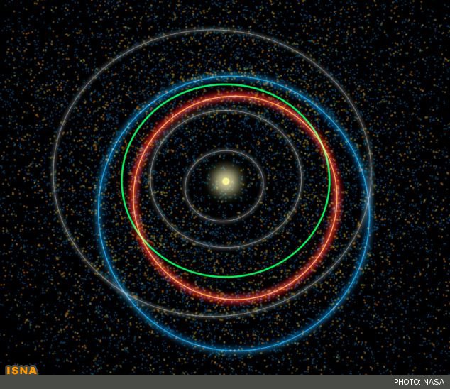 تفاوت بیم مدارهای سیارک نزدیک زمین (آبی) و سیارک خطرناک (نارنجی)