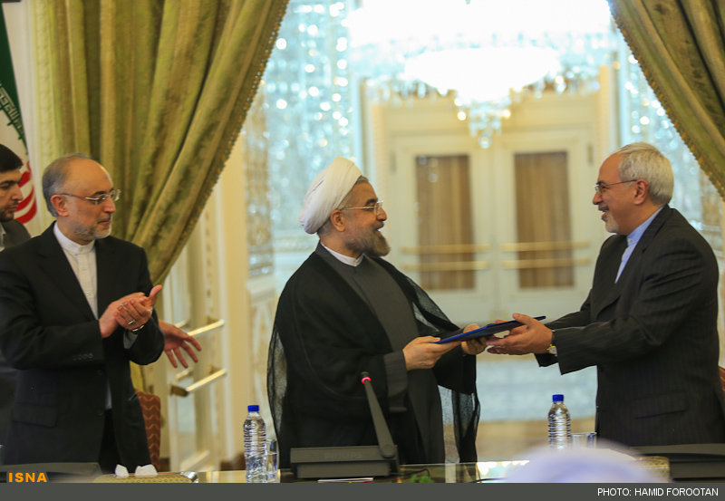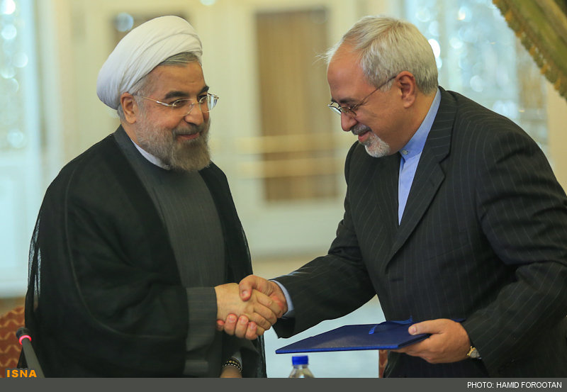 رییسجمهور در پایان سخنان خود حکم وزارت ظریف را نیز به وی اعطا کرد.