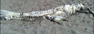 جسد درحال پوسیدن این موجود 4 متر طول دارد و در مرحله پیشرفته تجزیه قرار دارد.