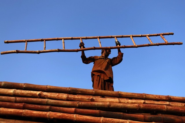 یک کارگاه تولید نردبان چوبی در کابل