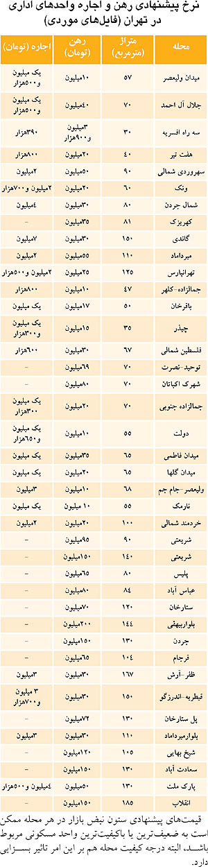 بازار رهن و اجاره واحدهای اداری این روزها برخلاف بازار رهن و اجاره واحدهای مسکونی در رکود به سر میبرد.