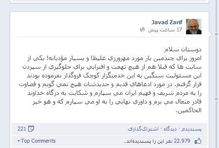 محمدجواد ظریف وزیر امور خارجه در واکنش به انتقادات اخیر از متن های توییتری او، در صفحه شخصی اش در فیس بوک نوشت: