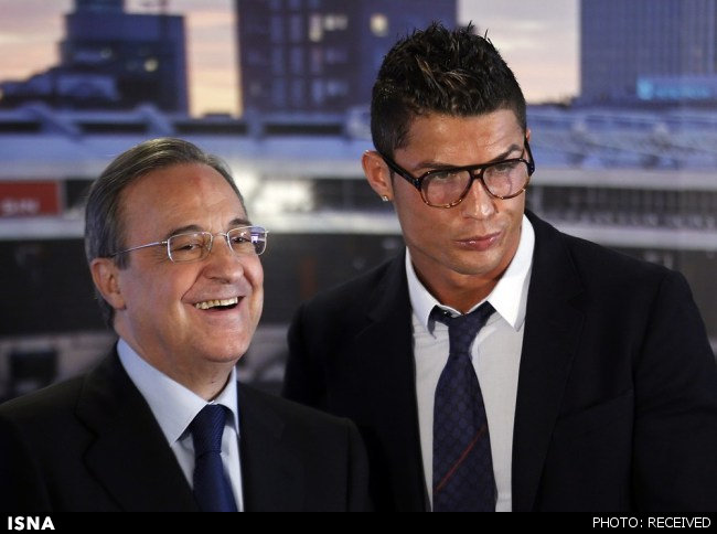 کریس رونالدو در کنار فلورنتینو پرز رئیس باشگاه رئال مادرید
