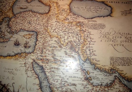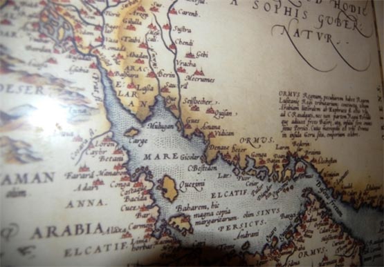 نقشه خلیج فارس اثر ابراهام ارتلیوس موجود در موزه مردم شناسی دبی