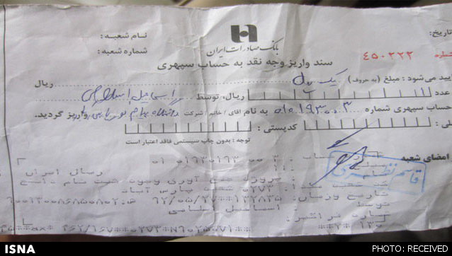 اسلامی با بیان اینکه کارمند بانک نیز از مشاهده چنین فیش واریزی متحیر شده بود، خاطرنشان میکند: به خاطر این یک ریال، 15 هزار تومان هزینه کردم و بعد از 2 ساعت معطلی در صف بانک موفق به واریز یک ریال شدم.