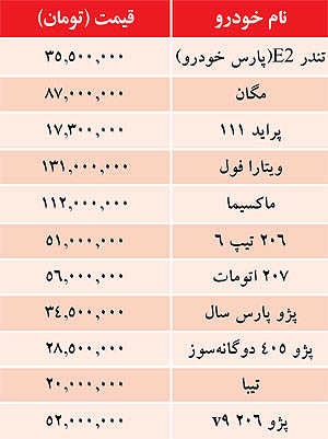 قيمت خودرو‌هاي داخلي در بازار (جدول)