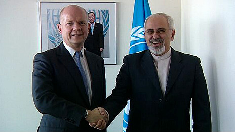 به گزارش بی بی سی، این ملاقات بعد از ظهر دوشنبه به وقت نیویورک (۱۰ و ۳۰ دقیقه شب به وقت تهران) بین محمدجواد ظریف و ویلیام هیگ در حاشیه نشست مجمع عمومی سازمان ملل متحد در نیویورک انجام شد.