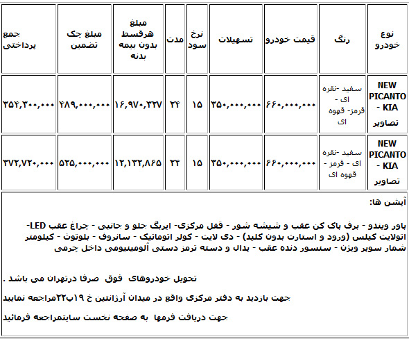 فروش شرایطی "کیا پیکانتو" (شرایط)