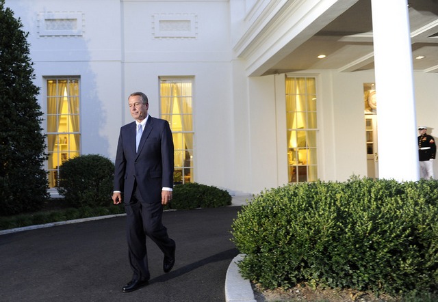 جان بینر رییس جمهوریخواه مجلس نمایندگان آمریکا پس از گفت و گوی بی نتیجه با اوباما بر سر بحران بودجه این کشور در کاخ سفید