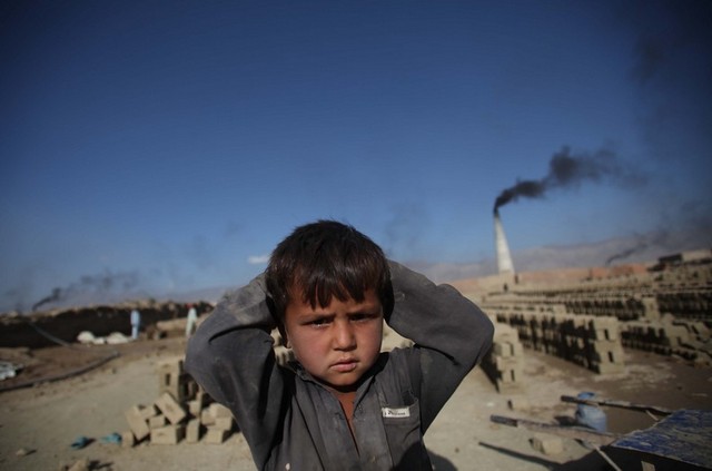 یک کودک کارگر در یک کارگاه آجر پزی در کابل
