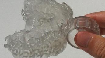 سپس یک مدل دیجیتالی سهبعدی از این وضعیت بر روی سرور شرکت Blizzident آپلود میشود و در آنجا یک قالب پلاستیکی سهبعدی از دندان چاپ میشود. این قالب دارای تقریبا 400 موی زبر زاویهدار به سبک خمیردندان خواهد بود.
