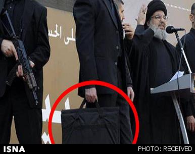 به گزارش قدسآنلاین، روزنامه لبنانی الدیار نوشت: یکی از محافظان سید حسن نصرالله دبیر کل حزب الله لبنان، در هنگام سخنرانی وی، یک کیف دستی سیاه در دست داشت که منجر به کنجکاوی بسیاری از مردم برای دانستن محتوای درون آن شد به گونهای که روز پنجشنبه بیشتر رسانههای سیاسی جهان عرب این خبر را منتشر کردند.