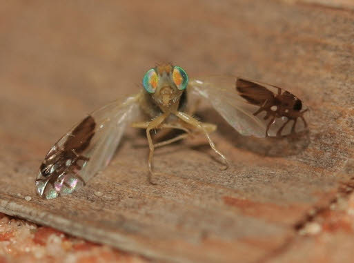 به عکس این نوع خاص مگس میوه به نام G tridens خوب دقت کنید، چنین به نظر می‌رسد که این مگس میوه، دو مورچه روی بال‌های خود دارد!