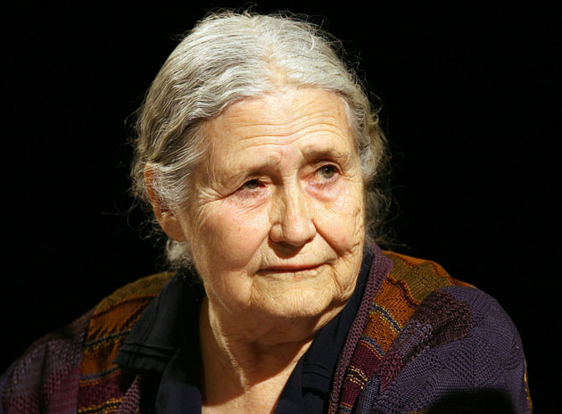 لسینگ به هنگام دریافت جایزه نوبل ادبیات