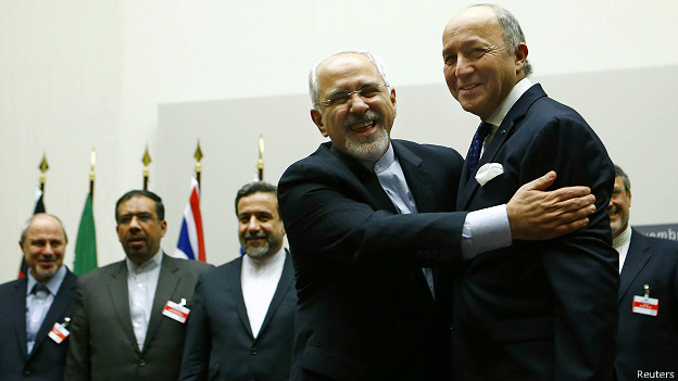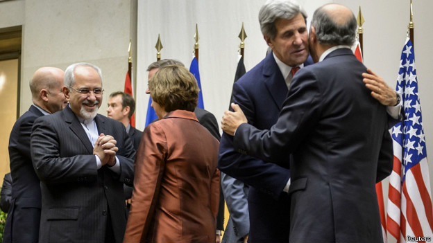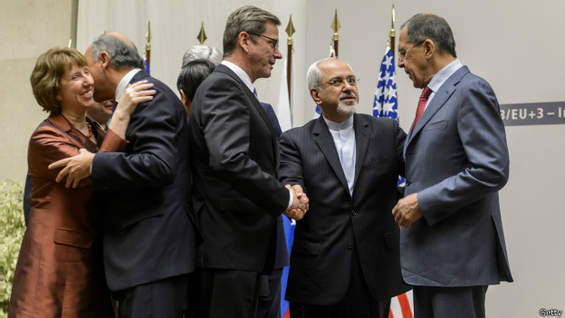 وزرای خارجه شش کشور گروه 1+5 به همراه کاترین اشتون مسئول سیاست خارجی اتحادیه اروپا و محمد جواد ظریف وزیر خارجه کشورمان شادمان پس از حصول توافق اولیه و تاریخی ژنو