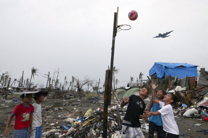 بازی بسکتبال کودکان توفان زده فیلیپینی