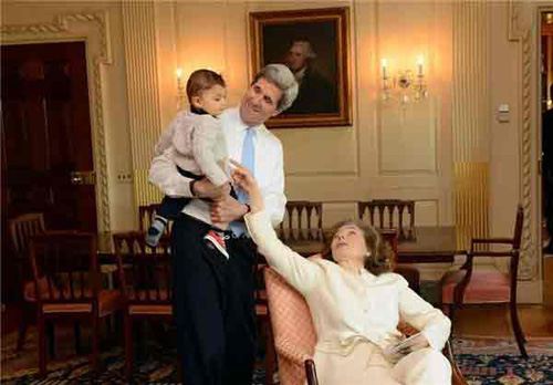 جان کری با طفلی که پدرش ایرانی الاصل است