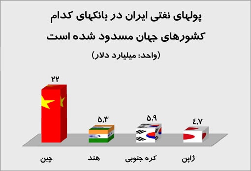 بانکهای چینی با 22 میلیارد دلار از منابع ارزی مسدود شده ایران بیشترین سهم را از منابع ارزی دور از دسترس کشور، به خود اختصاص داده اند.