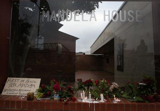گل و شمع در مقابل خانه قدیمی ماندلا در شهر سویتو در آفریقای جنوبی که به موزه تبدیل شده است
