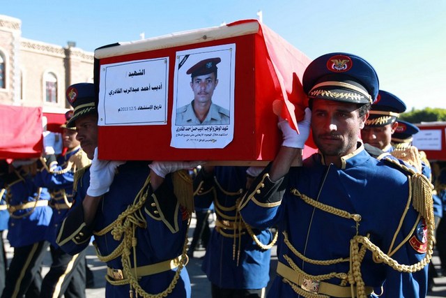 تشییع جنازه های قربانیان حمله تروریستی القاعده به مقر وزارت دفاع یمن در صنعا. در این حمله که پنج شنبه هفته گذشته روی داد 56 نفر کشته و بیش از 200 نفر زخمی شدند.