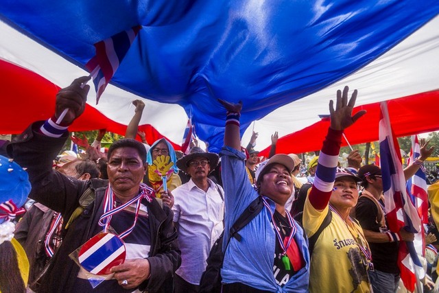 معترضان تایلندی در حال راهپیمایی و رفتن به سمت مقر نخست وزیری در بانکوک
