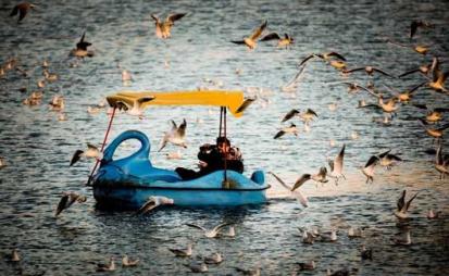 روزها که جمعیت و جنب و جوش اطراف دریاچه کمتر است، پرنده ها آزادانه پرواز می کنند و می چرخند اما عصرها و شب ها که مردم برای وقت گذرانی دریاچه چیتگر را انتخاب می کنند، پرنده ها به وسط دریاچه می روند و در خشکی های جزیره ای آن می نشینند تا استراحت کنند و دست آدم ها هم بهشان نرسد.
