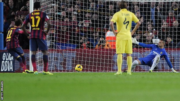 عصر ایران - نیمار، ستاره برزیلی بارسلونا، دیشب هر دو گل بارسا را در بازی با ویارئال به ثمر رساند. بارسلونا این مسابقه را 2 بر 1 به سود خود تمام کرد. عکس زیر، لحظه به ثمر رسیدن گل اول نیمار از روی نقطه پنالتی را نشان می دهد.