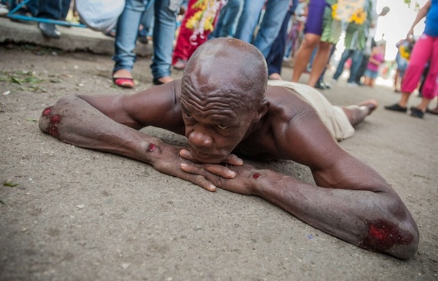 مناسک عبادی یک کوبایی کاتولیک در مقابل کلیسای سن لازاروس ( در25 کیلومتری شهر هاوانا پایتخت)