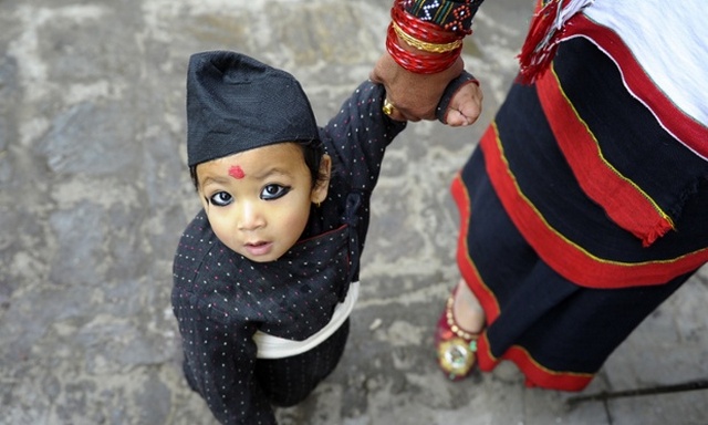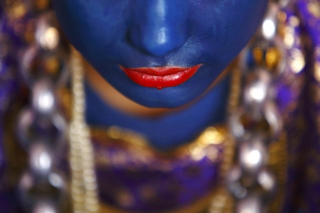 رنگ آمیزی بدن برای شرکت در یک آیین سنتی در کاتماندو نپال