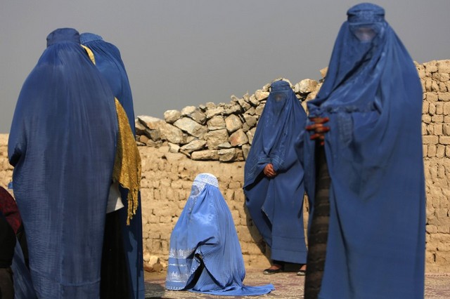 زنان افغان در کابل در انتظار برای مداوا در یک کلینیک سیار