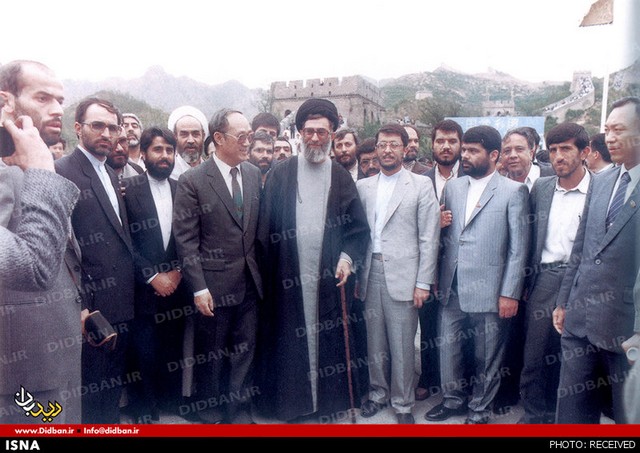 تصویر زیر، حضرت آیتالله خامنهای رهبر معظم انقلاب اسلامی و هیأت همراه را در سفر به چین و بازدید از دیوار مشهور چین در تاریخ 19 اردیبهشت 1368 و در زمان ریاست جمهوری ایشان نشان میدهد.