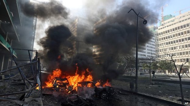 شبکه های تلویزیونی لبنانی تصاویری از جنازه های سوخته افرادی در محل انفجار را پخش می کنند.