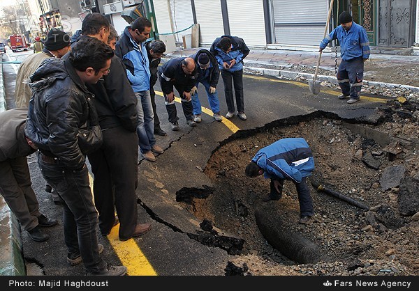بخشی از خیابان ولیعصر به دلیل ترکیدگی لوله آب نشست کرد و به دنبال آن دو ایستگاه آتش‌نشانی با شش دستگاه پمپ آب به محل حادثه واقع خیابان ولیعصر حد فاصل خیابان جمهوری و لبافی‌نژاد اعزام شدند.