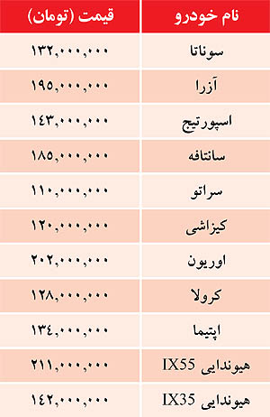 جدیدترین قیمت انواع خودروی داخلی و وارداتی (+جدول)