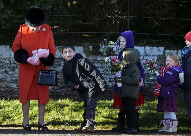 پس از شرکت ملکه بریتانیا در مراسم کلیسا برای کریسمس، کودکان حاضر در محل با صف بستن، گل و هدایایی تقدیم ملکه کردند.منبع عکس: خبرگزاری فرانسه