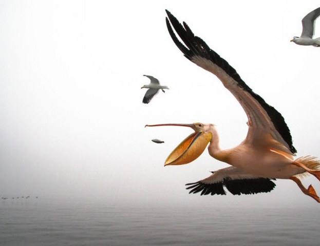 «روملو رجن» در یک کشتی نظامی بود در خلیج «والویس» نامیبیا بود، در حالی که او دلفین‌ها و سیل‌‌ها و سایر جانداران را تماشا می‌کرد، و اصلا در پی گرفتن عکس نبود، کاپیتان کشتی تکه‌های ماهی را از قایقی به بیرون انداخت و در لحظه، روملو متوجه این پلیکان شد:
