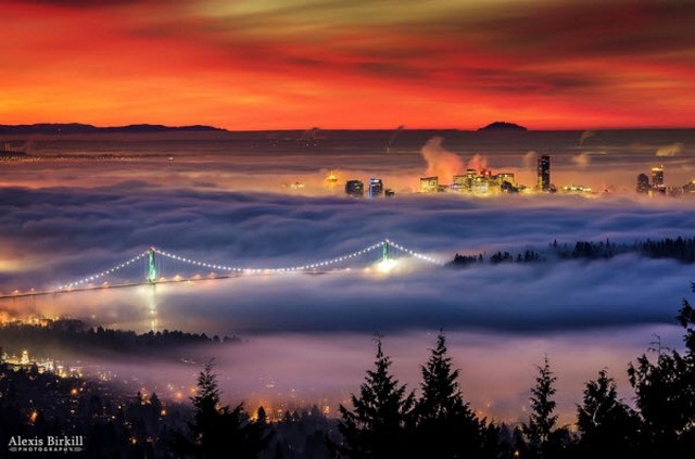معمولا شهر ونکوور دچار پدیده وارونگی دما نمی‌شود، اما در چند روز محدود در ماه ژانویه، در اولی صبح، این امر رخ می‌دهد و مه ایجاد شده در میانه روز پراکنده می‌شود.